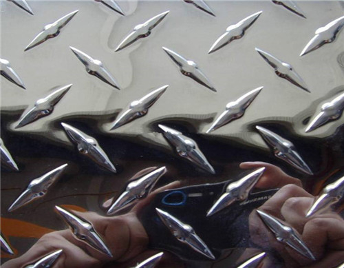 防滑鋁板及花紋鋁板,目前國內常用的防滑鋁板包括五條筋系列(柳葉花紋)和指針系列,尤其是五條筋花紋鋁板目前廣泛應用在工作平臺,車廂,輪船艙底,冷庫,車間防滑方面。目前,對于防滑鋁板的選擇通常為:冷庫,車廂,輪船艙底的防滑鋁板通常為1060-H24 3.0mm厚度,該系列鋁板不需要懸空,不承重。所以不需要選擇高厚度,高硬度的防滑鋁板。